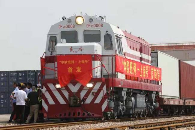Trenul de marfă China-Europa "Shanghai", încărcat cu 50 de containere de marfă, a părăsit marți Gara Minhang din Shanghai, cu destinația Hamburg (Germania), fiind inaugurată linia feroviară de marfă Shanghai-Hamburg.