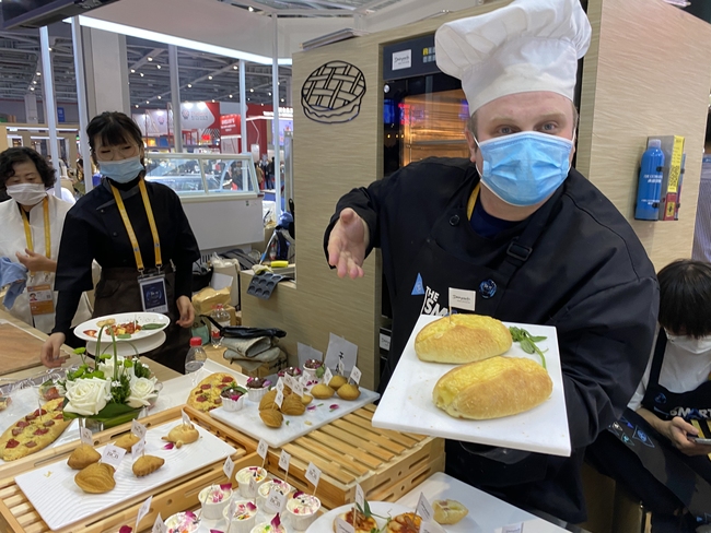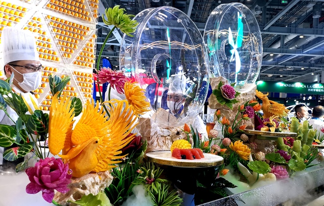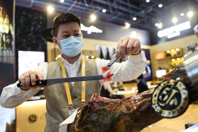 Înghețata din Turcia, șunca spaniolă, carnea artificială americană! Sunt doar câteva din preparatele străine delicioase care alcătuiesc "bucătăria mondială”a celei de-a 3-a ediții a Expoziției Internaționale pentru Importuri din China (EIIC). În zona de alimente și produse agricole din cadrul expoziției, vizitatorii intră într-o adevărată lume a artei culinare. (Sursa: ChinaFotoPress)