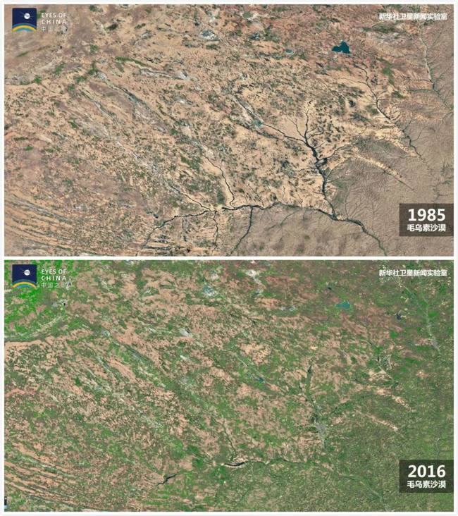 (Foto 6:Deșertului Mu Us în 1985 și 2016)