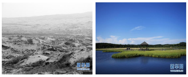 (Foto 5:Deșertului Kubuqi în 1985 și în 2016)