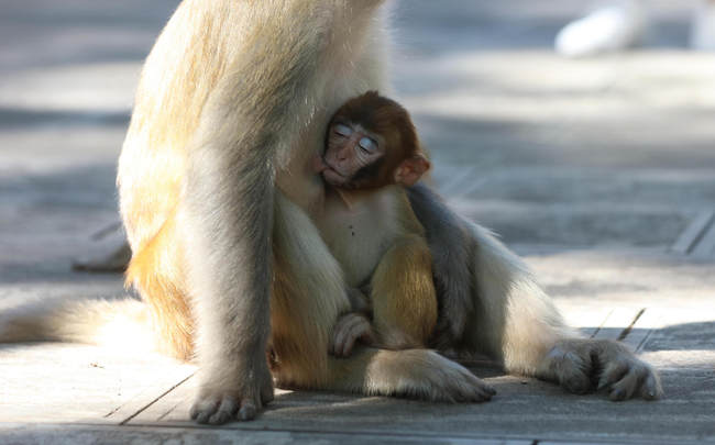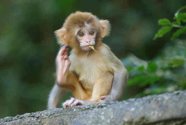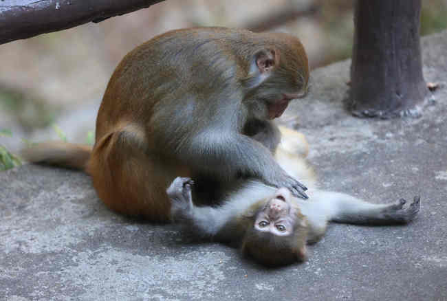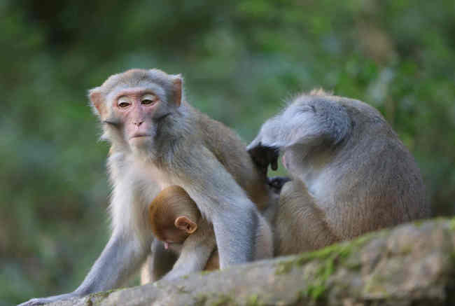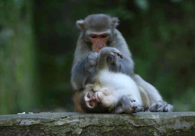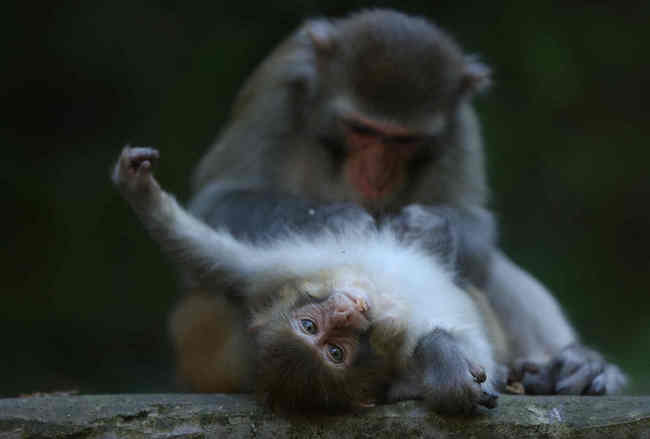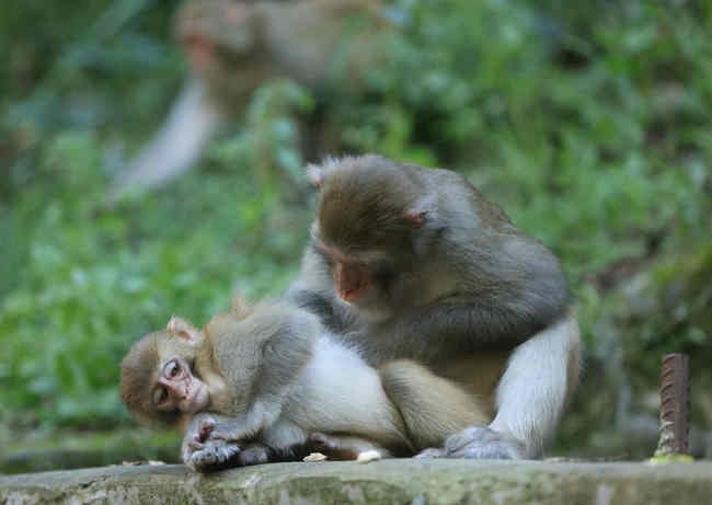 O familie de macaci sălbatici trăiește în zona turistică Wulingyuan din orașul Zhangjiajie, provincia Hunan. Unii se joacă prin copaci, alții se odihnesc pe pietre sau pe acoperișurile construcțiilor. Mamiferele sunt foarte simpatice și sunt o delectare pentru turiștii care viziteză zona.
