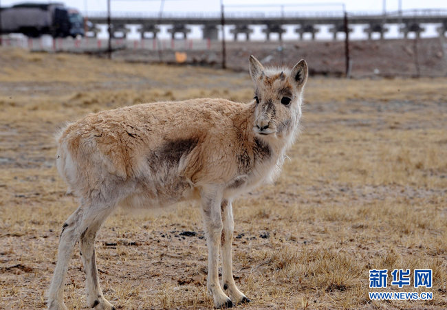 Foto 4: O antilopă tibetană se odihnește lângă calea ferată Qinghai-Tibet, Sursa: Xinhua News Agency