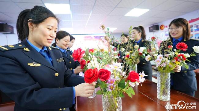 În 6 martie, angajatele Administrației pentru Management Urban din orașul Xingtai, provincia Hebei, se distrează făcând aranjamente florale.