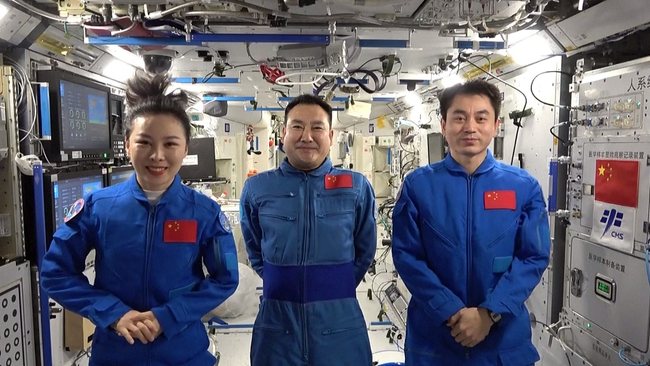 Aflați în timpul celei mai lungi misiuni spațiale a Chinei cu echipaj la bord, programată să dureze șase luni, astronauții și-au împărțit sarcinile, pentru a captiva întreaga atenție a elevilor.