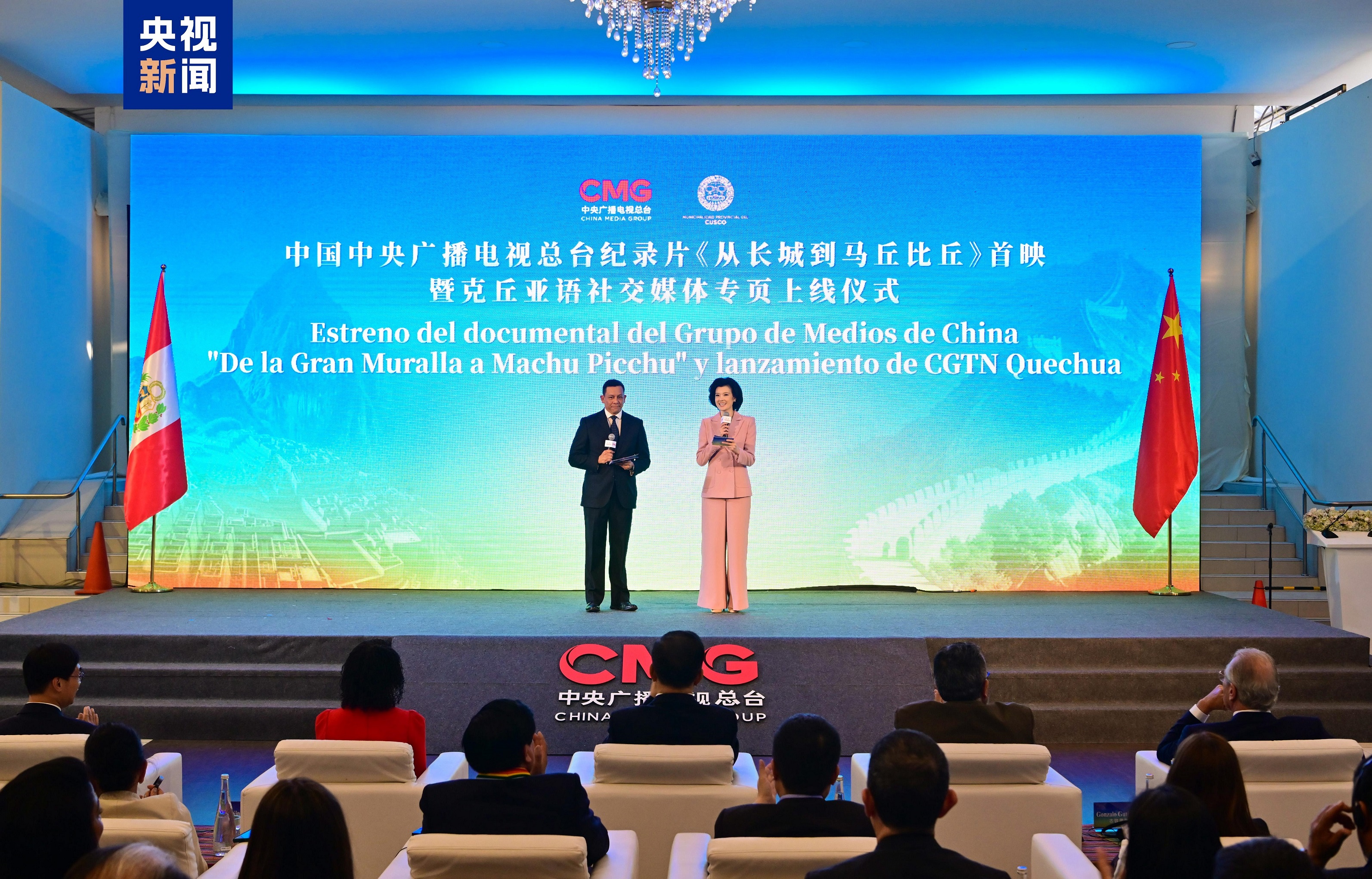 Premiera filmului documentar "De la Marele Zid, la Machu Picchu", produs de China Media Group (CMG) și lansarea paginii de socializare în limba quechua a avut loc vineri, la Lima (Peru). Președintele CMG, Shen Haixiong, și guvernatorul provinciei Cuzco, Luis Beltrán Pantoja Calvo, au vorbit în cadrul ceremoniei la care au participat aproape 200 de invitați din cercurile politic, academic, economic, cultural și media din Peru, inclusiv ministrul Culturii, Fabricio Valencia, președintele executiv al Grupului Național de Radio și Televiziune, Ninoska Chandía, secretarul general al Comunității Andina, Gonzalo Gutiérrez.