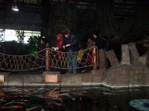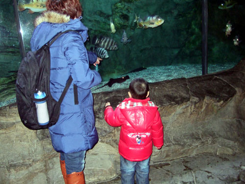 Acvariul gigantic este dotat cu un sistem avansat de susţinere a vieţii, care utilizează apă sărată artificială, într-o cantitate totală de peste 18 mii de tone. Cele şapte săli de expoziţie au fost gândite şi proiectate pe şapte teme, cu scopul de a informa, dar şi de a educa, în special, tinerele generaţii, să cunoască şi să protejeze mediul, într-un mod cât mai ecologic. Temele alese sunt "Aventuri în pădurea tropical umedă", "Ciocnirea mareelor", "Minunile recifurilor de corali", "Debarcaderul rechinului", deschis în octombrie 2006, "Sala sturionului chinezesc rar", "Golful balenelor şi universul peştilor" şi "Pavilionul mamiferelor marine", nume sugestive şi inspirat alese parcă din poveştile bătrânilor marinari.