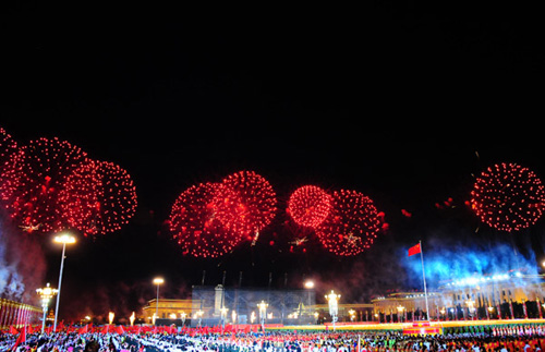 Dimineaţă a fost organizată în Piaţa Tian'anmen o adunare de sărbătoare consacrată acestei aniversări.
