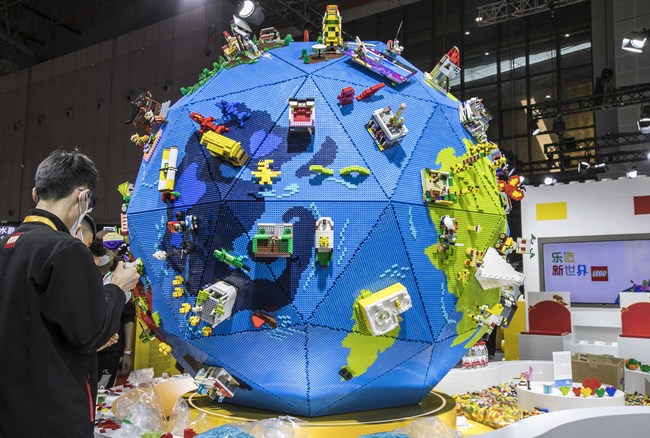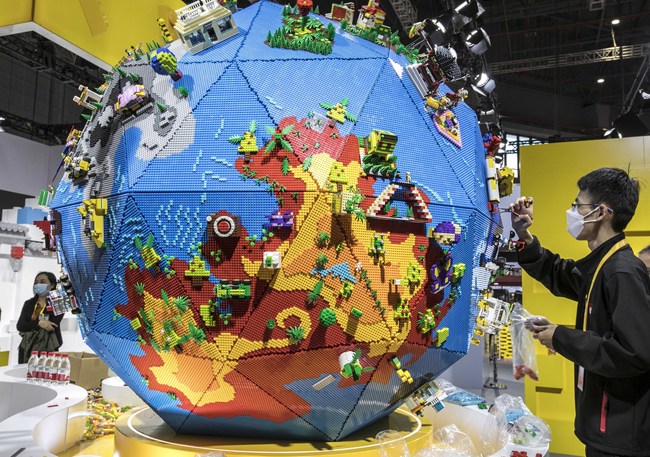 Cei de la grupul Lego au avut o inițiativă inedită prin construcția unui Glob Lego, o jucărie rotundă, pe care turisții o pot vedea la Expoziția Internațională de Import din China, care se desfășoară în Shanghai. Globul de culoare albastră are o înălțime de 2,7 m și un diametru de 2 metri. Pentru construcția jucăriei-gigant au muncit nouă pasionați de lego timp de 242 ore și alte 51 ore l-au necesitat instalarea acesteia în cadrul expoziției. Globul Lego are 62.750 de piese și greutatea de 106 kilograme. Pe suprafața acestuia sunt diverse piese din lego realizate de 100 copii chinezi.