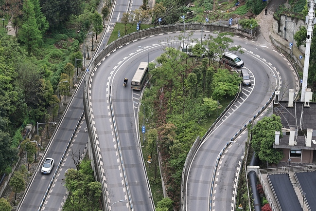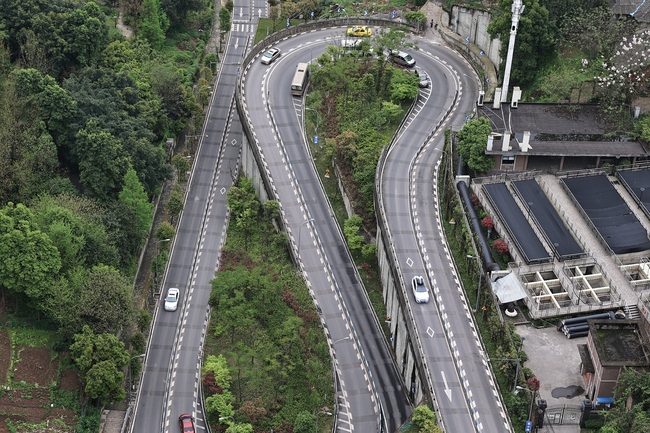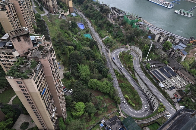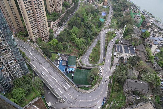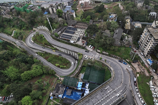 Chongqingul, supranumit orașul tridimensional, are o șosea renumită pe Internet. Cu o lungime de 1,7 kilometri, pe o porțiune de numai câteva sute de metri sunt construite trei curbe în forma agrafei de păr.