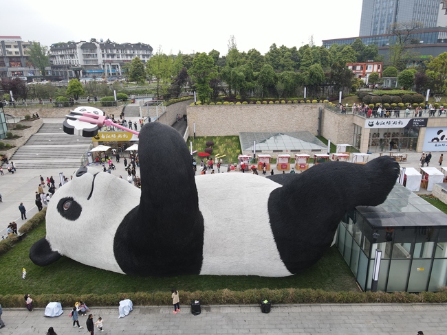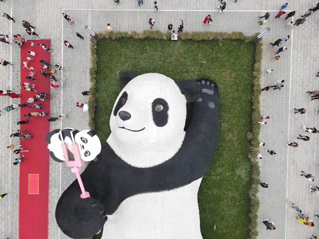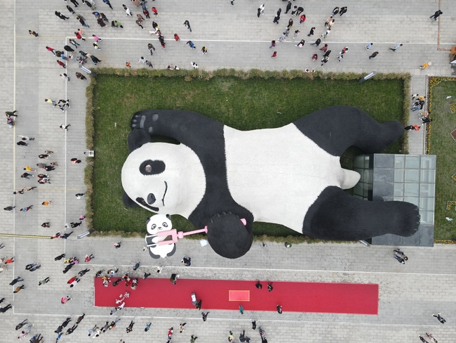 Cel mai greu urs Panda din lume cântărește 130 de tone și este o sculptură. Ursul gigant este așezat pe iarbă într-o poziție relaxată, facându-și un selfie. Lucrarea se află într-un loc aglomerat din orașul Dujiangyan (Sichuan). Așa că nu e de mirare că mii de turiști vor să imortalizeze uriașul.