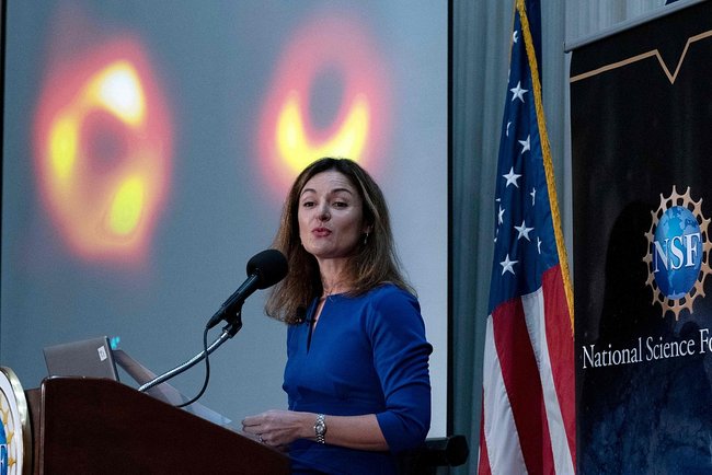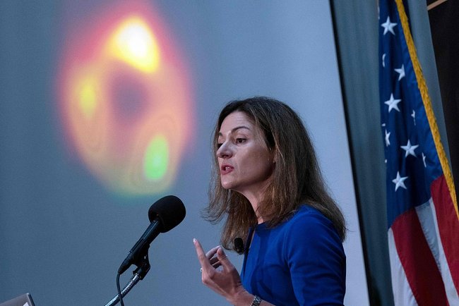 Astronomii au prezentat, în 12 mai, la o conferință de presă, prima fotografie cu cea mai mare gaură neagră, situată în centrul galaxiei Calea Lactee. Fotografia a fost realizată prin Event Horizon Telescope (EHT), utilizând radiotelescoape de pe întregul Pământ. (Foto: ChinaFotoPress)