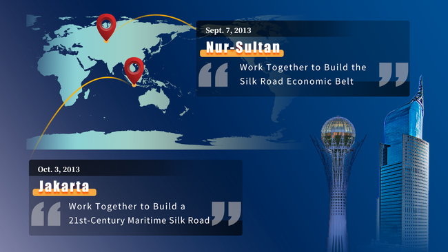 Preşedintele Chinei, Xi Jinping, a lansat în în 2013 în Kazahstan iniţiativa Centura economică a Drumului Mătăsii şi tot în același an, în Indonezia, iniţiativa Drumul Mătăsii maritim din secolul 21. Ambele proiecte fac parte din iniţiativa "O centură, un drum".