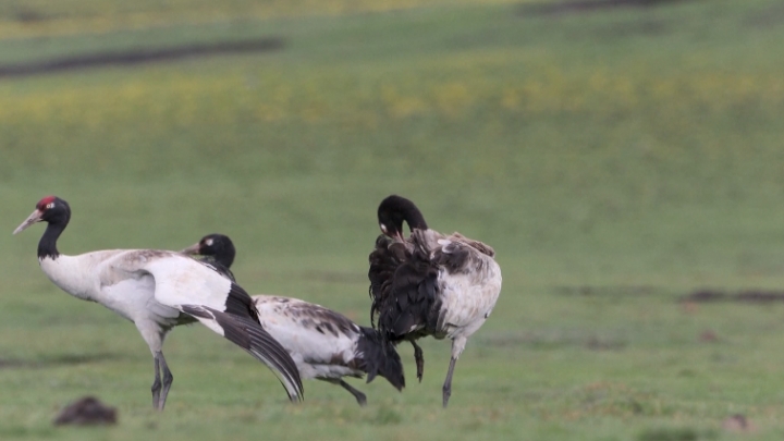 Pui de cocor cu gât negru au ieșit din ouă unul după altul în terenurile mlăștinoase de pe stepa din districtul autonom Aba a etniilor tibetană și qiang din provincia Sichuan. Părinții cocor sunt foarte ocupați acum cu noii născuți