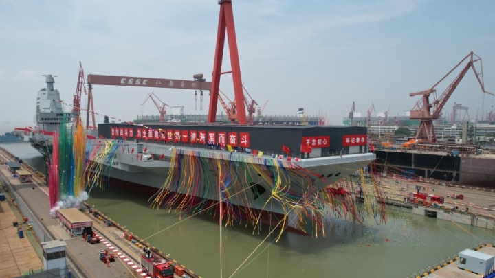 Ceremonia de lansare a Portavionului Fujian a avut loc, vineri dimineața, pe șantierul Jiangnan din municipiul Shanghai