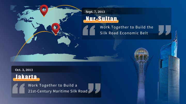 Preşedintele Chinei, Xi Jinping, a lansat în în 2013 în Kazahstan iniţiativa Centura economică a Drumului Mătăsii şi tot în același an, în Indonezia, iniţiativa Drumul Mătăsii maritim din secolul 21. Ambele proiecte fac parte din iniţiativa "O centură, un drum"