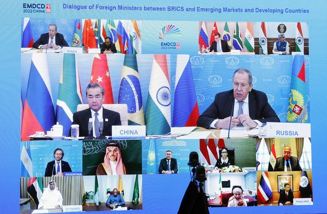 Miniştrii de Externe din ţările BRICS, Kazahstan, Arabia Saudită, Argentina, Egipt, Indonezia, Nigeria, Senegal, Emiratele Arabe Unite şi Thailanda etc., au participat joi la o video-conferinţă, prezidată de Wang Yi, ministrul chinez de Externe