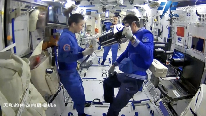 Taikonauții de pe nava spațială Shenzhou 13 locuiesc și muncesc de o jumătate de an pe orbită. Cum fac ei curățenie în Stația Spațială Chineză? Aparatul negru din video este pentru culegerea reziduurilor