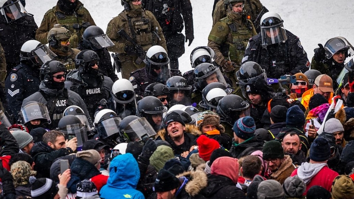 Potrivit informațiilor, în ultimele zile, poliția canadiană a efectuat o operațiune de „eliminare” a manifestanților „Freedom Motorcade”care au ocupat centrul orașului Ottawa. Poliția a folosit spray cu piper, bombe șoc și bastoane pentru a-i alunga violent pe manifestanți