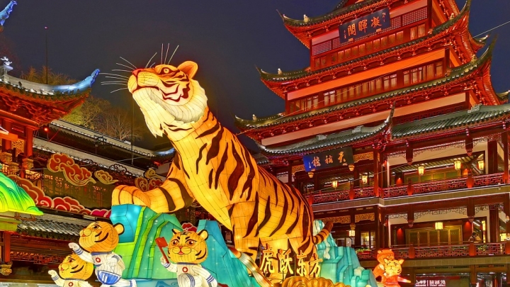 Festivalul Lampioanelor Artistice de la Shanghai 2022 a fost deschis publicului. Evenimentul are loc de Sărbătoarea Primăverii din acest an, care bate la ușă, şi este organizat în cunoscuta destinaţie turistică Yuyuan. Acolo, a fost amplasat un grup de lampioane în forma unui tigru înalt de 9 metri