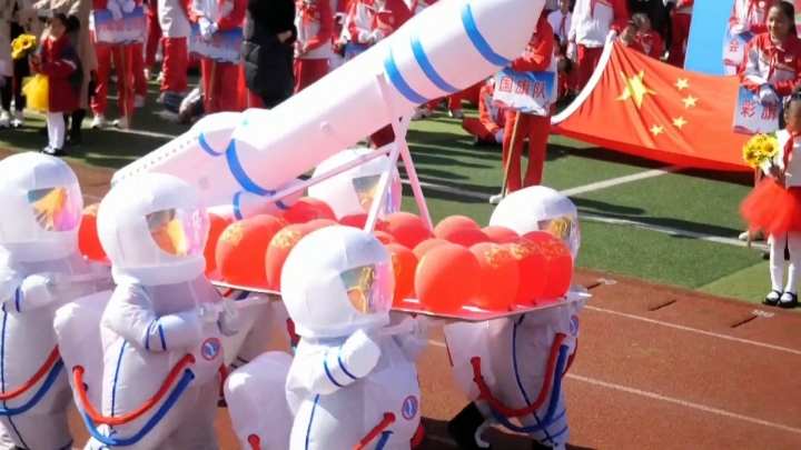 Un grup de elevi au purtat „costume spațiale”, la ceremonia de deschidere a jocurilor sportive ale unei școli primare din Shangrao, provincia Jiangxi.Elevii au atras atenția tuturor participanților