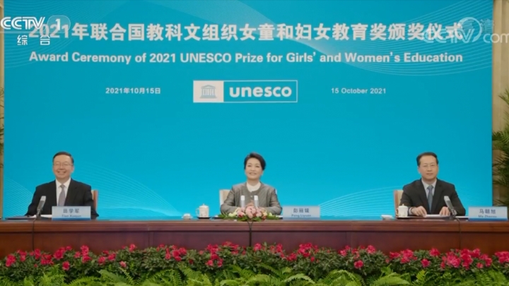 Peng Liyuan, soția președintelui Chinei, Xi Jinping, și trimis special al UNESCO pentru promovarea educației în rândul fetelor și femeilor, a participat la ceremonia de decernare a Premiului UNESCO pentru educația fetelor și femeilor în format videoconferință, ocazie cu care a avut un discurs.