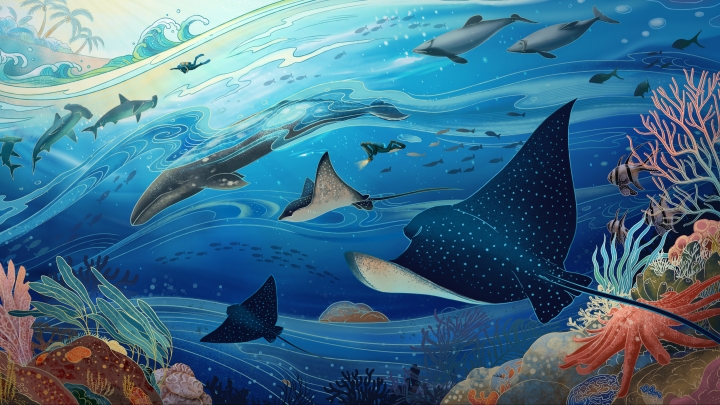 O serie formată din tei ilustrații prezintă relația strânsă dintre diferite specii de animale și activitățile umane, în cadrul celor trei ecosisteme: aerul, pământul și apa. Ilustratele arata rolul important al conservării biodiversității, în dezvoltarea durabilă a lumii