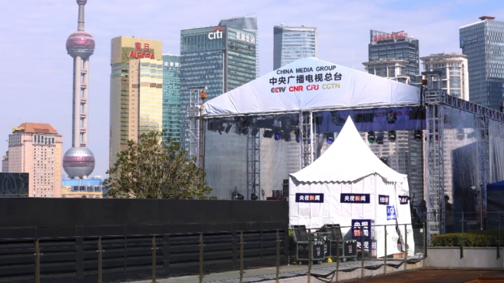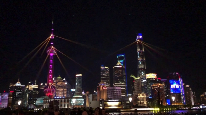 Un spectacol de lumini pe tema Expoziției Internaționale pentru Importuri din China (EIIC) a avut loc, în seara zilei de 4 noiembrie, pe malul Fluviului Huangpu, la Shanghai