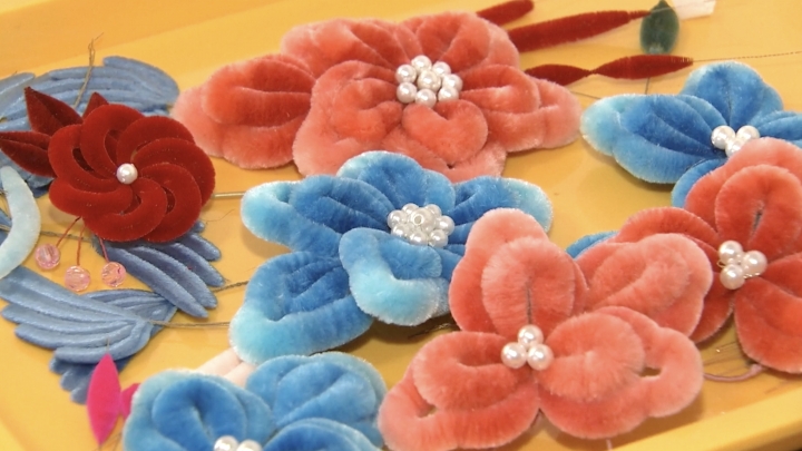 Bing Dwen Dwen și Shuey Rhon Rhon, în decupaje de hârtie