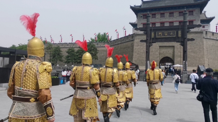 "Războinici de aur" patrulează pe zidul antic din Xi'an