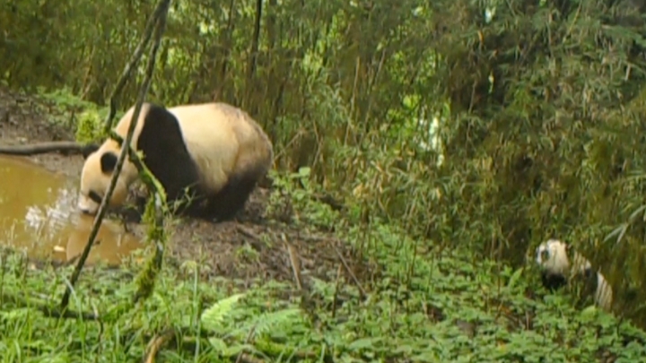 Usoaică și un pui panda, libertate în sălbăticie