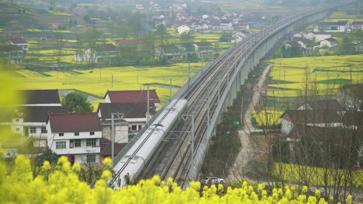 Cu trenul prin culturile de flori de rapiță