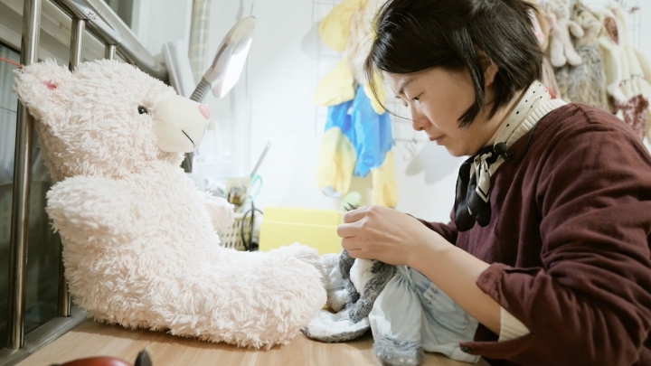 O tânără chinezoaică dă viață mascotelor de pluș uzate