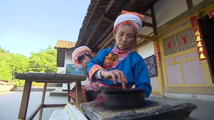 O vârstnică de etnie Miao, moștenitoare a tehnicii batik