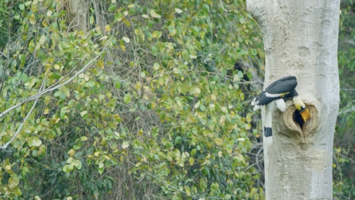 Imagini rare cu o pasăre-rinocer cu două coarne