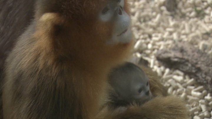 Pui de maimuță aurie în fața publicului