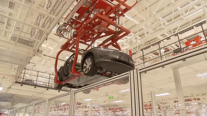 Linia de producție a mașinilor Tesla Model Y